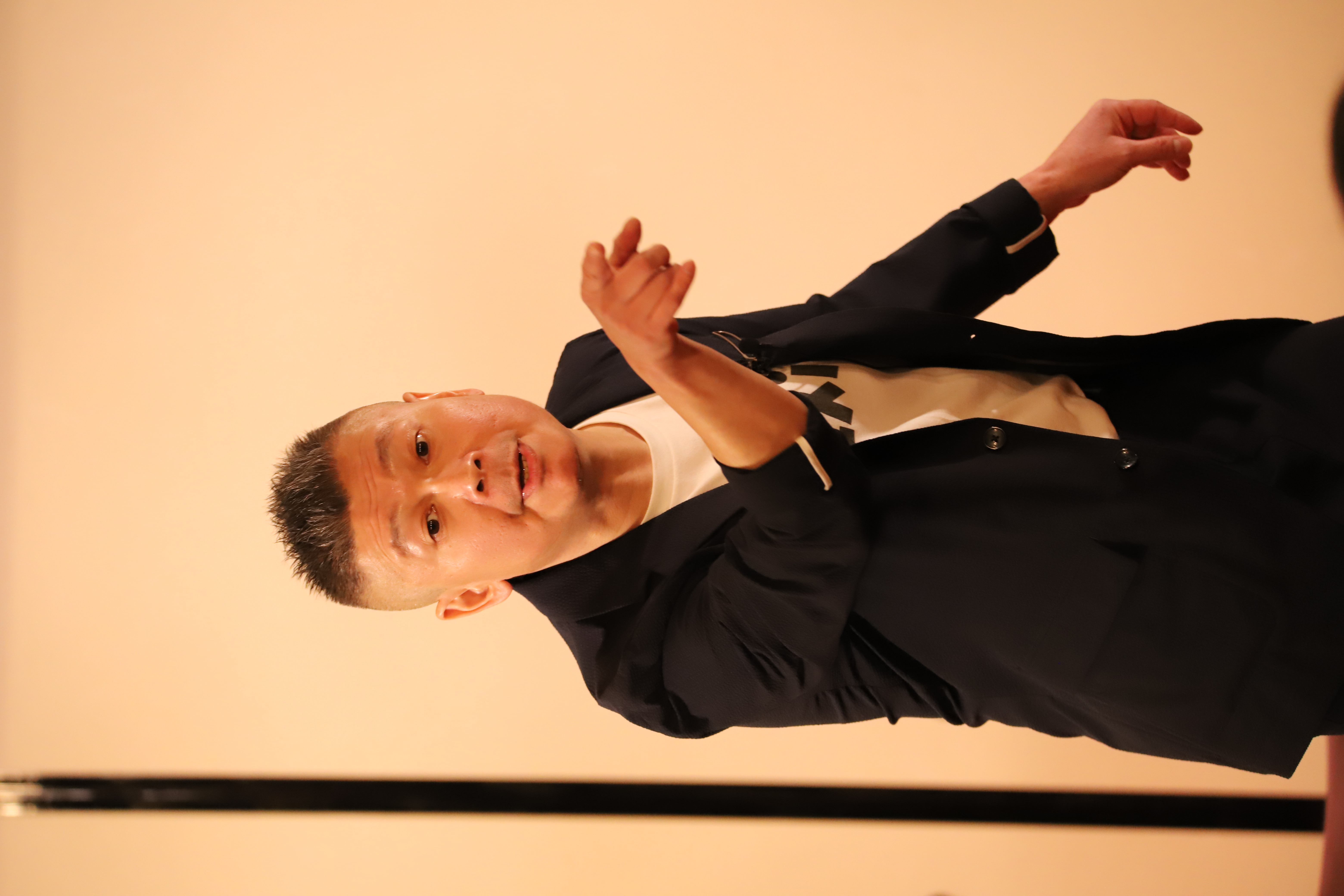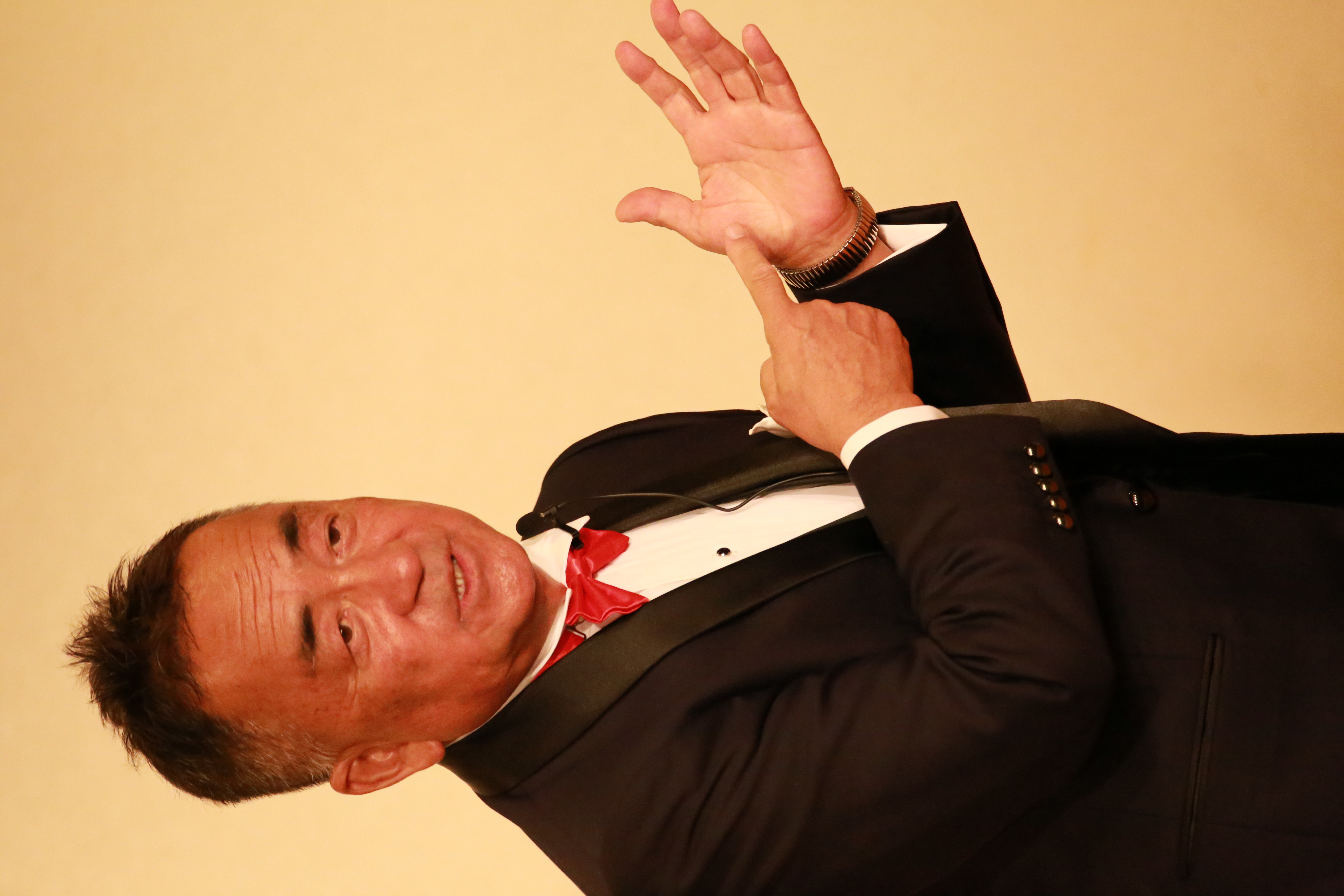 一度でファンになり、何度か弊社公演にも参加してもらいました。その内、所属していたワハハ本舗から独立。みずからのオフィス笑数派を組織しております。その芸風が祟ったのか心筋梗塞で減塩生活、さらに大腸癌まで患っておりますが、全国各地を精力的に飛び回っております。
