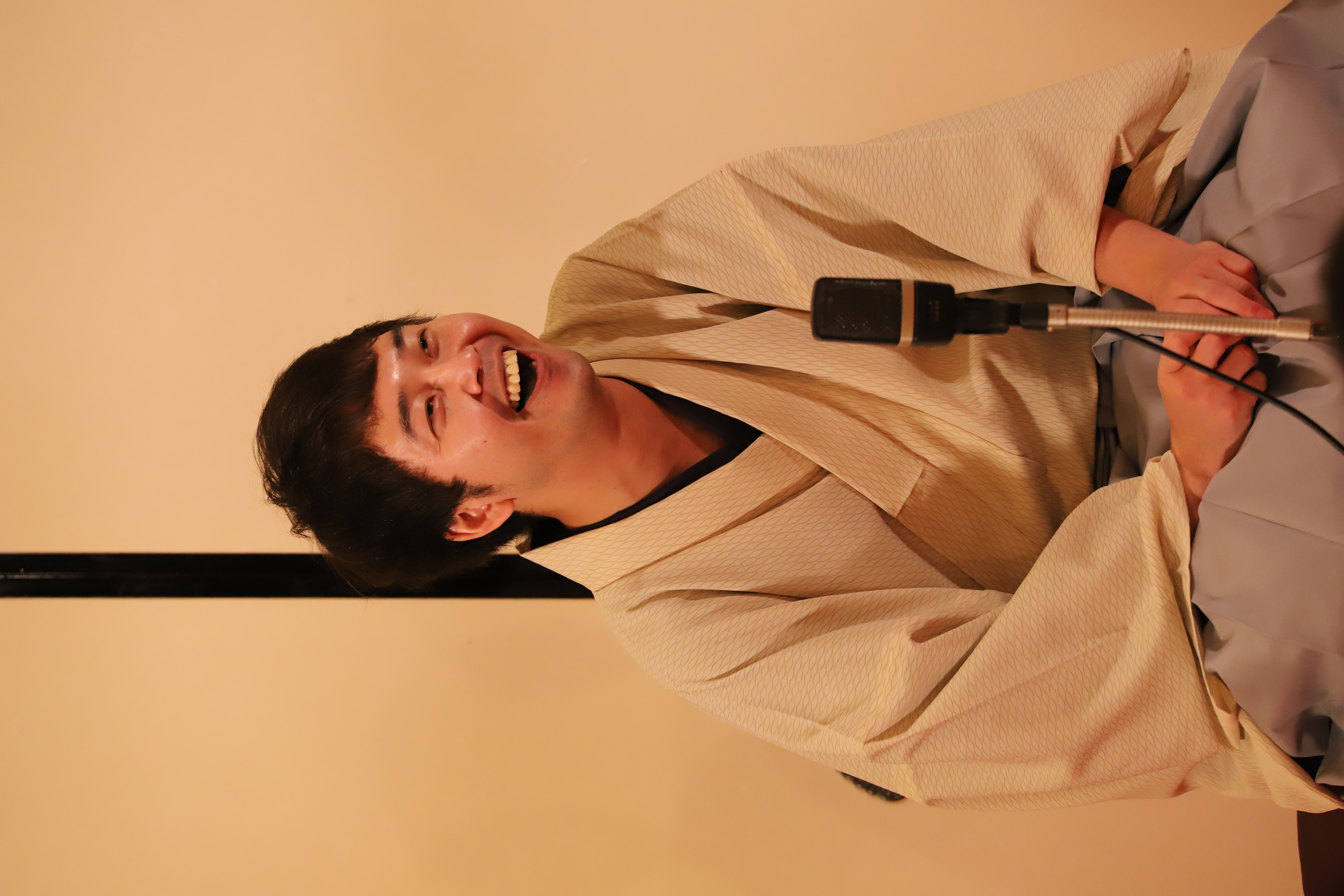 【立川かしめ】1989年名古屋出身。広告代理店勤務を経て落語家立川こしらの一番弟子となる。2メートル近い長身で回りに威圧感を与える。前座の頃から才気煥発でセンス抜群。放送作家の奥山コーシンにも可愛がられ、多くの諸先輩からとの交遊も幅広い。映画「パラダイス 半島」にも出演している。今回はほぼ初のスタンダップに挑戦する。