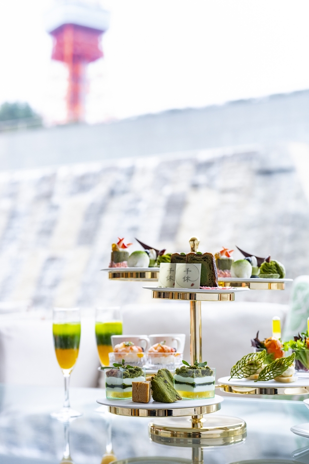 第2弾となる今回は、さらに“抹茶らしさ”と”千休らしさ”を追求。千休の定番スイーツ「抹茶玄米カヌレ」や「米粉の抹茶フィナンシェ」をはじめ、すべてグルテンフリーのラインアップでご用意しました。抹茶のコク・香り・旨みを、素材の個性とともに五感で存分にお楽しみいただけます。東京タワーを見上げる絶景のロビーラウンジで、特別な抹茶アフタヌーンティーを心ゆくまでご堪能ください。