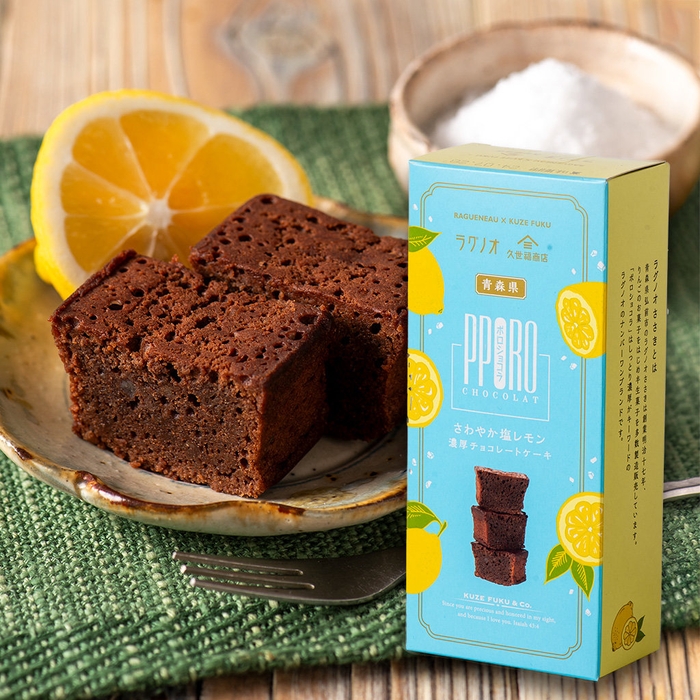 新商品の「ポロショコラ さわやか塩レモン」は、濃厚なチョコレートケーキに瀬戸内のレモンの果皮と五島列島の塩を組み合わせた、爽やかな味わいのチョコレートケーキです。その味と華やかなパッケージデザインは、日本の夏を彷彿とさせます。