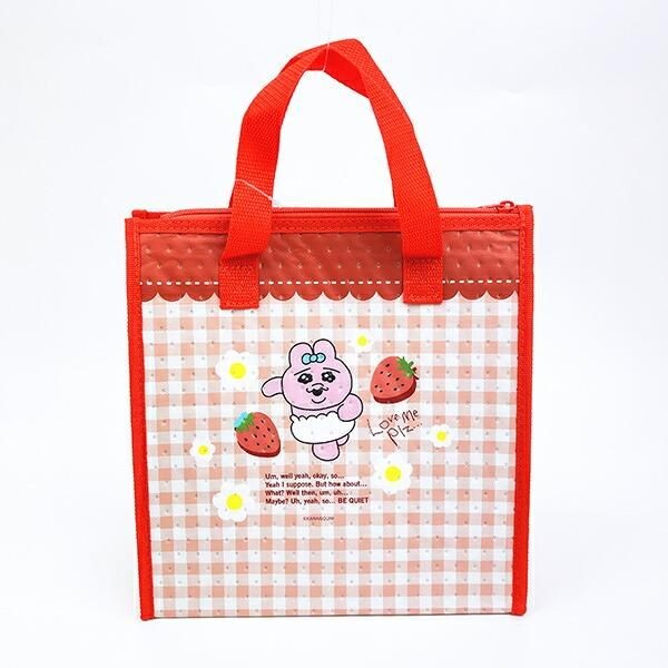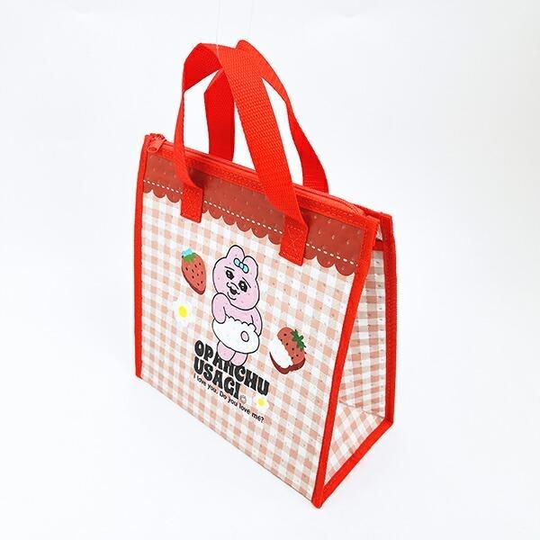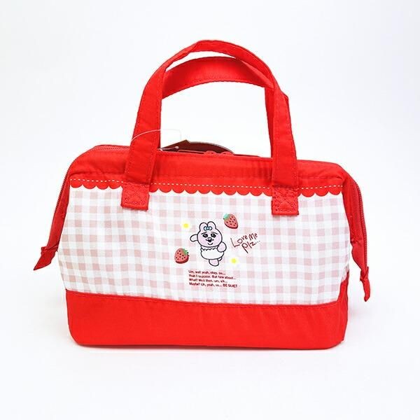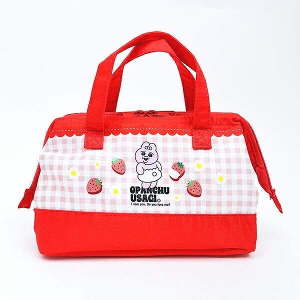最後は、「がま口型ランチバッグ(M)」。おぱんちゅうさぎの化粧ポーチみたいに、おしゃれでラブリーな保冷ランチバッグです!サイズは16cm×22cm×11.5cm。鮮やかな赤いカラーがとても素敵!