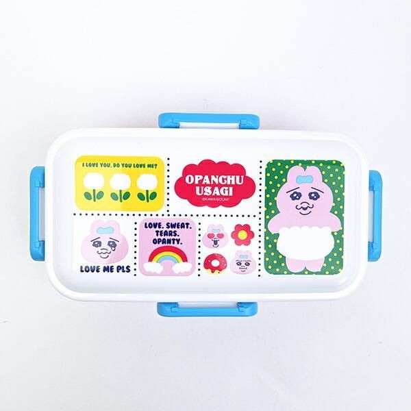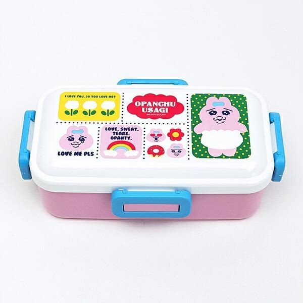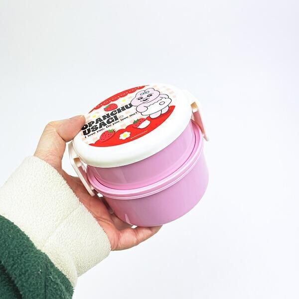 まずは「ふわっと弁当箱」。ピンク&水色のカラーリングと、フタに描かれた表情豊かなおぱんちゅうさぎがとってもキュート。サイズは6.2cm×18.6cm×10.8cm。