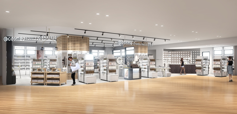 1階は化粧品とファッションのフロアとして「MiSUGI / SK-II」、「@cosme STORE / MiSUGI」、「ベルファム」が新たにオープンし、より充実したフロアへリニューアルいたします。その他にも2階に「ブティック シンキ」、7階に