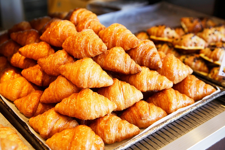 人気の秘密は、焼きたてのパンの「美味しさ」と「焼きたて」へのこだわり。生地は製粉メーカーと共同開発の北海道産100%のオリジナル小麦と発酵バターを使用し、外はサクサク、中はしっとりの食感とバターの風味が特徴。お店ではオーブンから次々に焼き上がるクロワッサンにオリジナルシロップを塗り、仕上げる様子を目の前で体験いただける「焼きたて実演ショップ」です。店内は常に焼きたてパンの香りでいっぱいです。