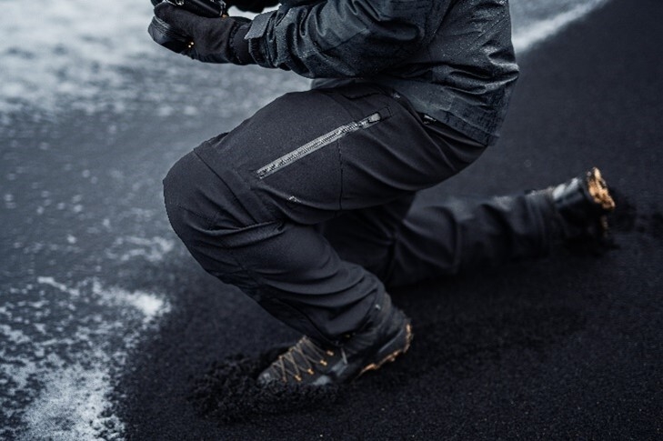 “エブリシング・プルーフ・パンツ”は所謂サンドウィッチ状の3層構造を採用し、その真ん中に非常に高性能なメンブレン(防水膜)を配置することで、雨や風から身体を完全に保護すると同時に、最高レベルの透湿性を実現しています。