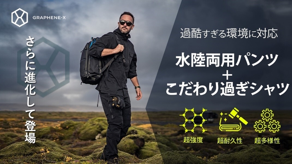 GRAPHENE-Xの真骨頂である、究極の耐久性と多用途性を極めたパンツとシャツをリリースする運びとなりました。