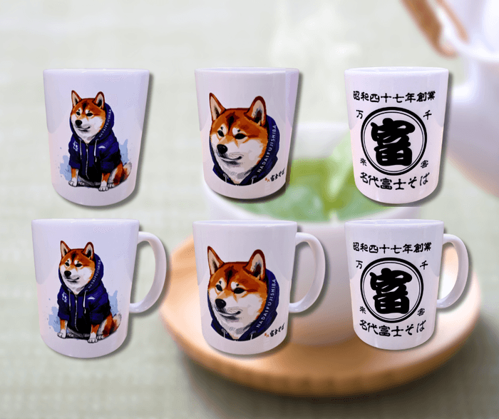 公式通販サイトでは、名代富士ロゴを始め、様々なオリジナルデザインが展開されておりますが、中でも、PRアンバサダー(になりたい)名代富士しば(NADAI FUJISHIBA)デザインのグッズが大人気です。富士そばファンだけではなく、柴犬ファンにも好評です。