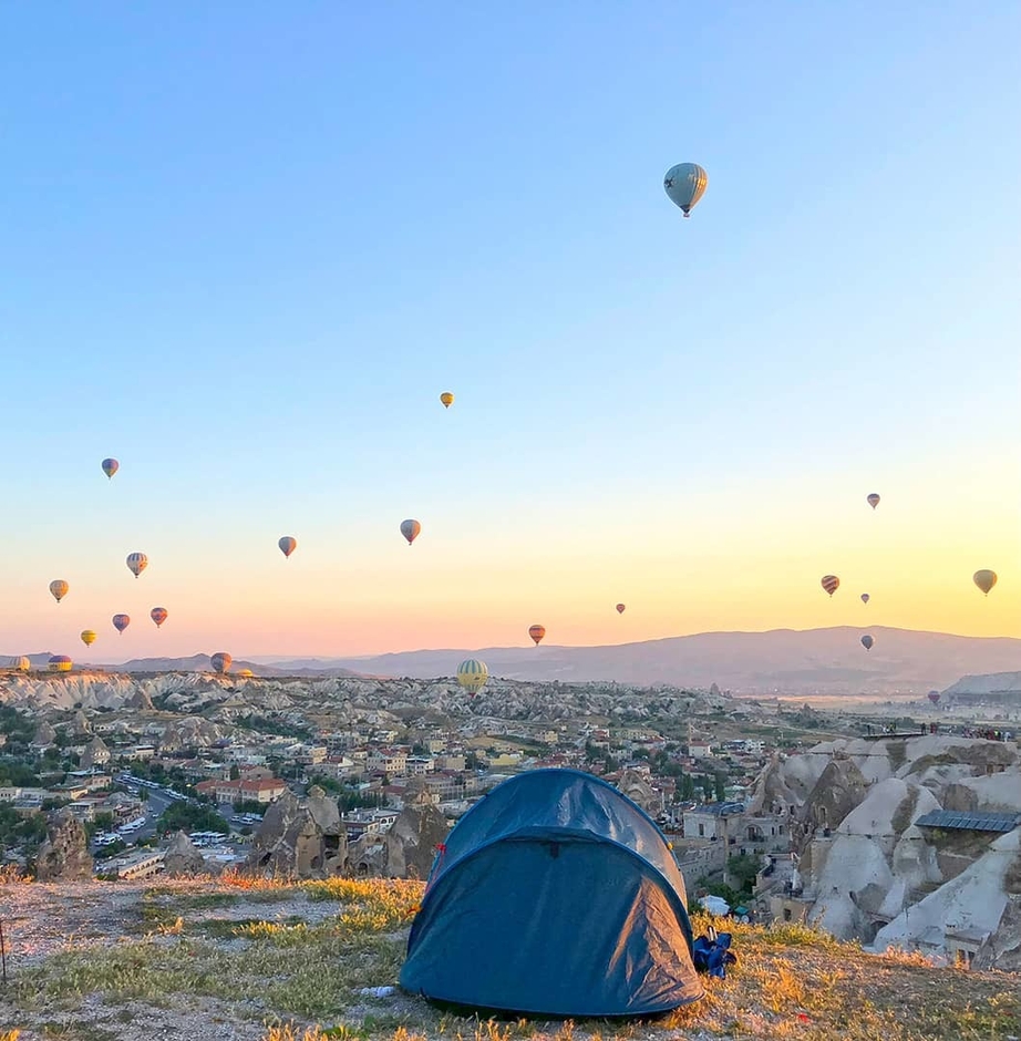アナトリア高原中央部のネブシェヒル県に位置する世界遺産「カッパドキア」は、トルコの観光スポットとして人気を集めています。「妖精の煙突」と呼ばれる奇岩群を眼下に眺める気球ツアーが有名で魅惑的な体験ができるキャンプ場所です。
