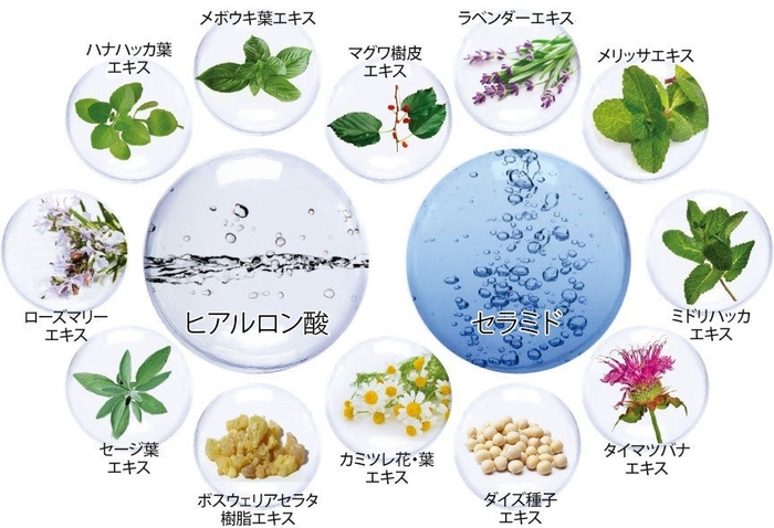 人体にも含まれる成分と各種植物成分でできているため、安心してお使いいただけます。また、お客様の肌への負担を考え、アルコールやシリコン、パラベンは不使用です。