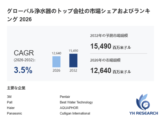 上記の図表/データは、YHResearchの最新レポート「グローバル浄水器のトップ会社の市場シェアおよびランキング 2026」から引用されています。