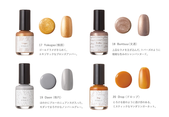 OSAJI(オサジ)メイクコレクションから、「ネイルカラー限定3色、新色4色、マットトップコート、限定フェイスカラーパレット」が登場。2020年11月13日(金)より発売開始