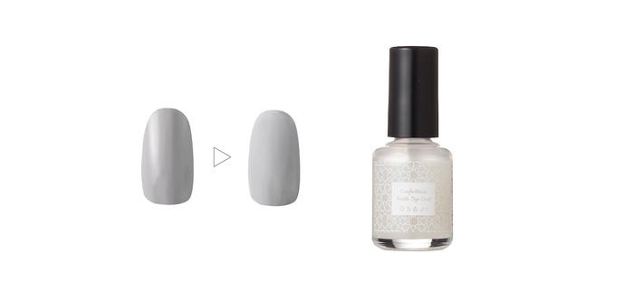 水蒸気や酸素を透過する設計で、ネイルカラーが乾燥するときの収縮状態が起こりにくく、塗布後の爪を圧迫しません。速乾性も高めているため、塗布直後からの快適な使用感が続きます。