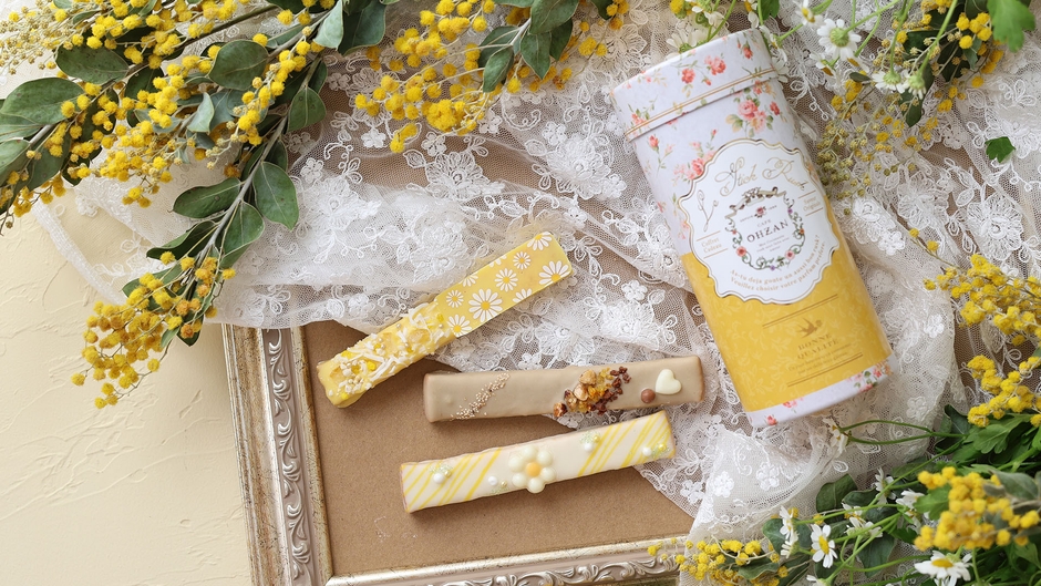 “大人可愛い”をテーマにチョコレートラスクを展開するCAFE OHZAN(カフェオウザン)。サクサクに焼き上げたパンドゥミーに濃厚なチョコレートをまとわせたチョコレートラスクを製造しています。新しくマーガレットをイメージしたデザインの限定商品が登場しました。小さめのサイズが可愛いキューブラスク(5個入)と、細長い形状のスティックラスク(3本入)の2種類です。