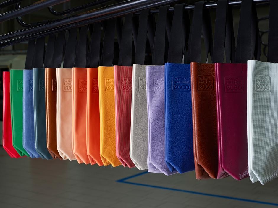 ECCOのクリーンでサステナブルなレザーづくりの姿勢は創業当時から変わりません。多数のレザーサンプルとアーカイブを利用しトートバッグにアップサイクルした『TANNERY SERIES 001』をはじめ、廃棄物の最小化とエネルギーに変える自給自足の工場運営、限りなく水の使用を最小化した『DriTan(TM)』レザーの開発など、環境にも人にも優しいブランドを目指しています。