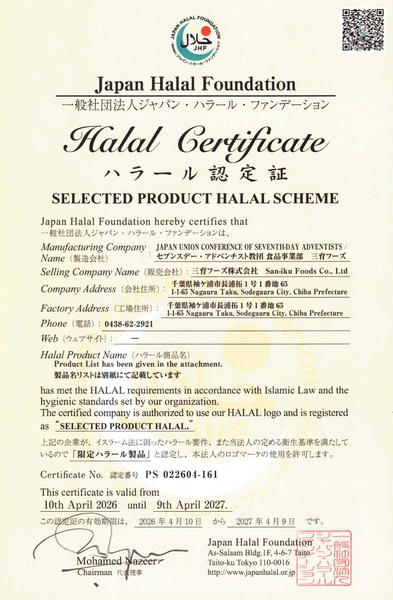植物性食品(プラントベース)製造の三育フーズ株式会社(本社:千葉県袖ケ浦市)は、2026年4月10日、一般社団法人ジャパン・ハラール・ファンデーションよりハラル認証を取得しました。今回の認証により、インバウンド需要や東南アジアを中心とした海外市場へ、安心・安全な「食」の選択肢を提供します。対象はMakuakeで目標2,258%を達成した製品を含む全28品目です。