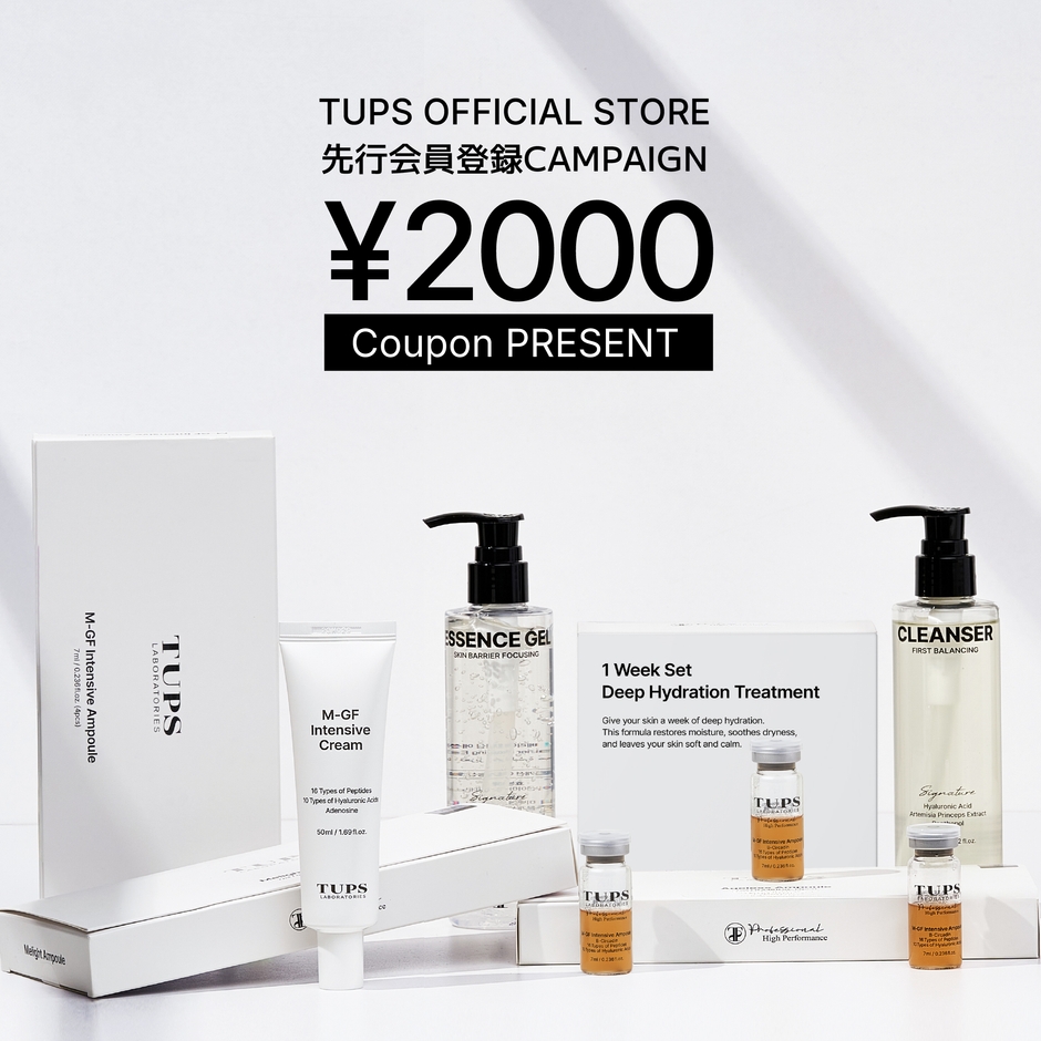株式会社FREEBE(本社:大阪府大阪市、代表取締役:大津 孝行)は、韓国のプレミアムエステティック専門企業・株式会社4OURSKINが展開するスキンケアブランド「TUPS(トゥップス)」の日本公式販売を2025年10月19日(予定)より開始いたします。これに先立ち、10月4日から「TUPS OFFICIAL STORE」にて先行会員登録キャンペーンを実施し、登録者全員に2,000円分のクーポンをプレゼントいたします。