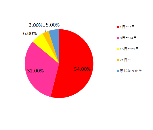 1週間以内: 54% 2週間以内:32%