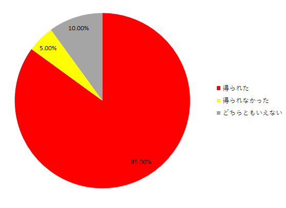 た。その結果約80以上%の方が実感して頂くという結果になりました。