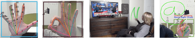 手首から先を認識して掌を中心とした21関節を割当てカタチや動きからジェスチャー認識。