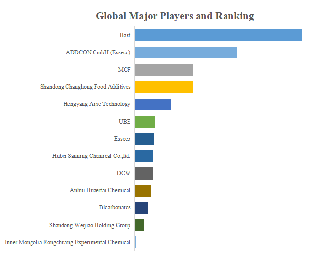 QYResearchのトップ企業研究センターによると、重炭酸アンモニウムの世界的な主要製造業者には、Basf、ADDCON GmbH (Esseco)、MCF、Shandong Changhong Food Additives、Hengyang Aijie Technology、UBE、Esseco、Hubei Sanning Chemical Co.,ltd.、DCW、Anhui Huaertai Chemicalなどが含まれている。2023年、世界のトップ5企業は売上の観点から約71.0%の市場シェアを持っていた。