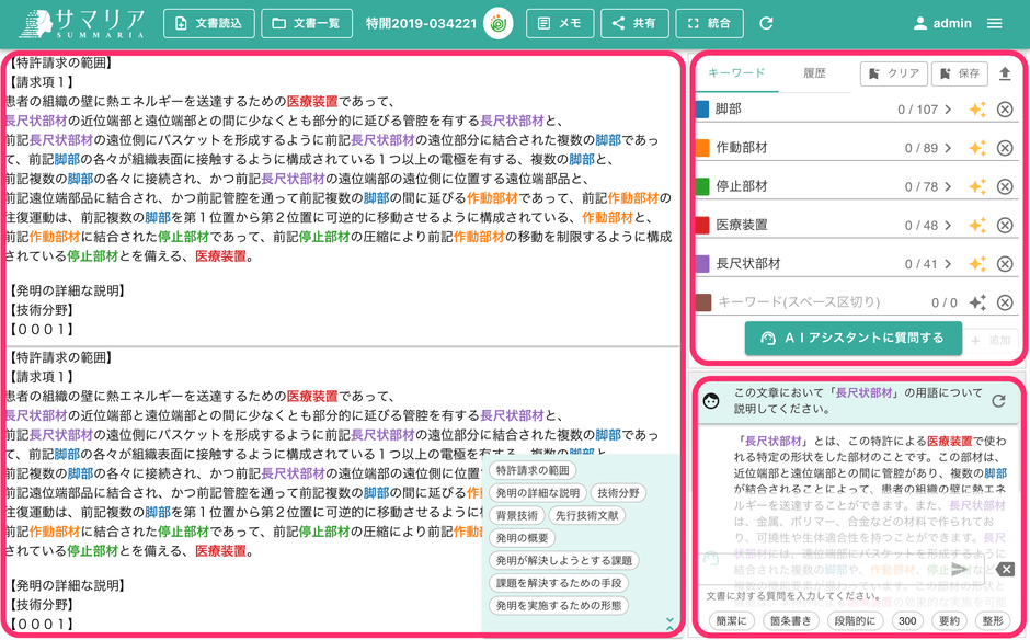 特許文書読解アシスタント「サマリア」