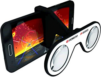 VRグラスをスマホに装着すると、360°のバーチャルリアリティを実現します。
