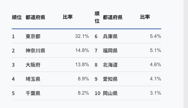 1 東京都 32.1%