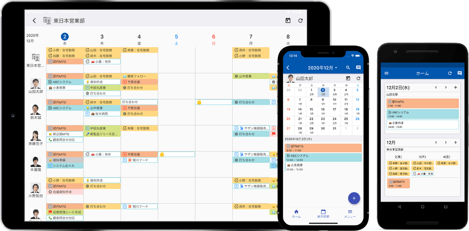 「desknet's NEOスケジュールアプリ」は、iPad、Androidタブレットでも利用可能。Webブラウザを超える手軽さ・快適さで、スケジュールを確認・共有できます。