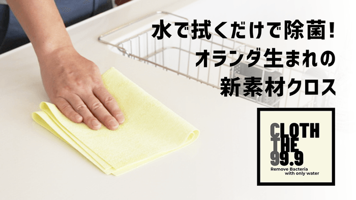 アメリカのラボでも実証、水で拭くだけで99.9%除菌完了 エコ先進国オランダで生まれた 特殊ポリウレタン加工を施した新素材クロス 《CLOTH THE 99.9(クロス・ザ・スリーナイン)》 2020年9月14日(月)よりMakuakeにて先行販売を開始