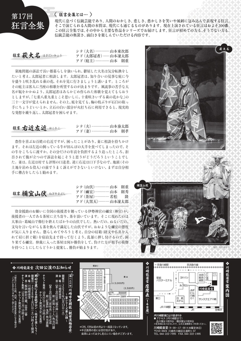 公益財団法人川崎市文化財団主催、『第17回狂言全集』が2025年10月25日 (土)に川崎能楽堂(神奈川県 川崎市川崎区 日進町 1-37)にて上演されます。