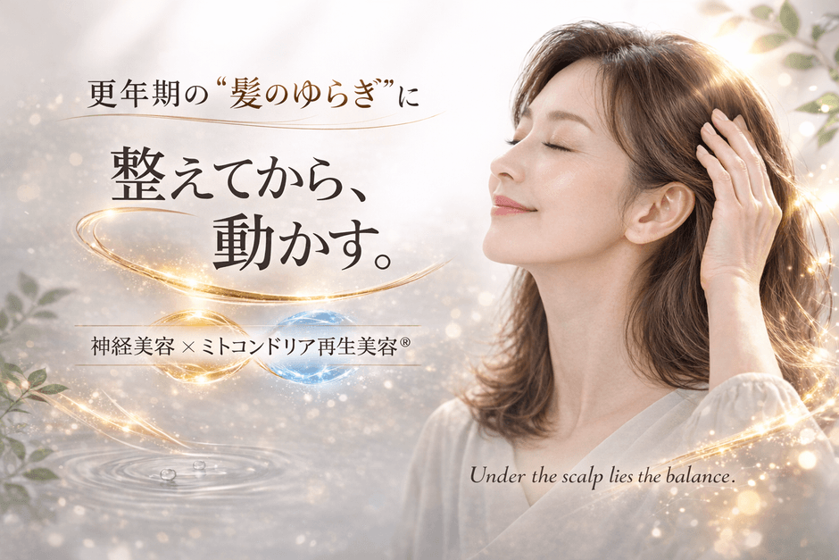 今回発表する「艶髪スカルプ」は、神経美容(起動) → ミトコンドリア再生美容(R)(再生)という2段階設計を採用した統合型頭皮ケアです。