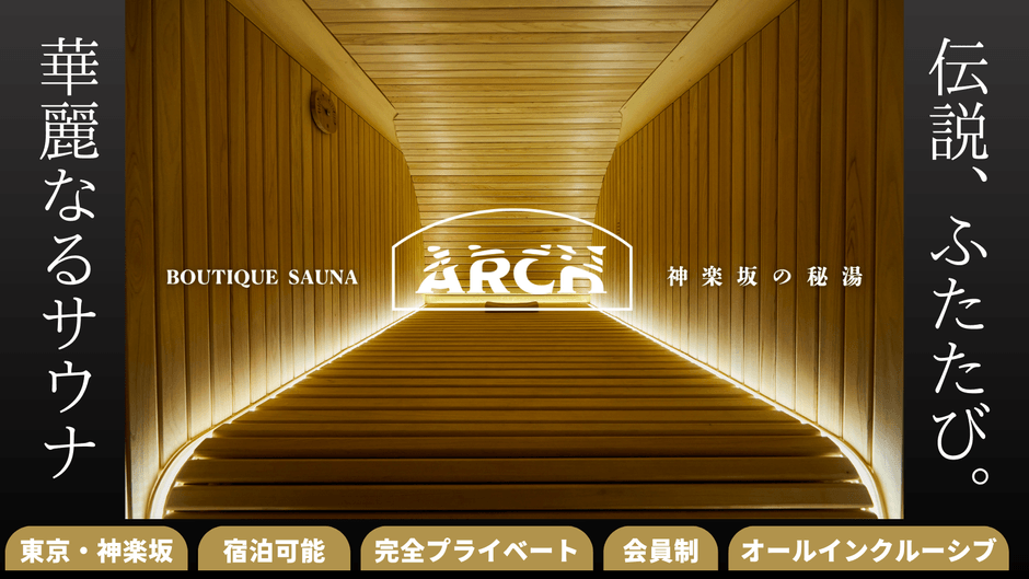 東京・神楽坂の秘湯。会員制・泊まれるプライベートサウナ 「ブティックサウナARCH」1周年を記念し、法人向けプランなど Makuakeにて最大70%オフの特別限定プランを8/7より販売開始