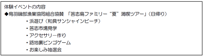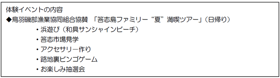 鳥羽磯部漁業協同組合協賛 「 答志島ファミリー“夏”満喫ツアー 」