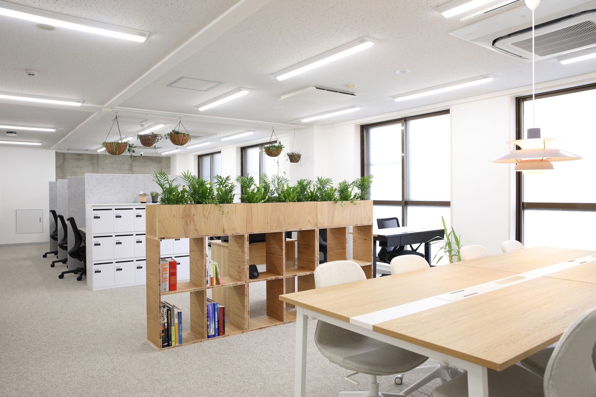 集中できる鍵付きの個室プランも、フリーアドレスのコワーキングプランもご用意しています。また、コワーキングエリアには大テーブルやパーティションを備えた集中できるワークテーブルを設置しています。