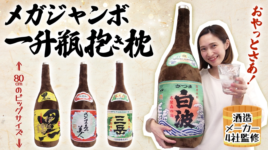 鹿児島の酒造メーカー監修! 「メガジャンボ一升瓶抱き枕」をMakuakeで販売開始