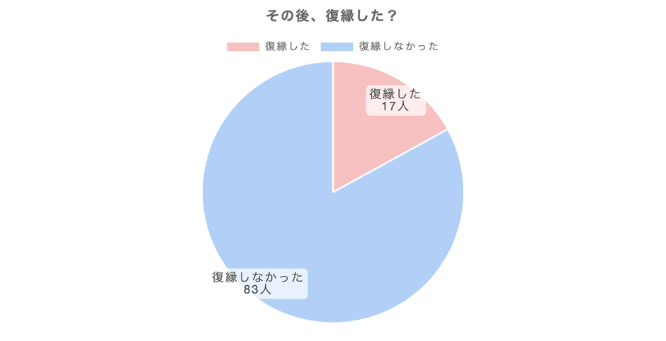 ・復縁した17人のうち、「復縁したけど別れた」と答えた人が12人と、約7割が再び別れることを選択してました。