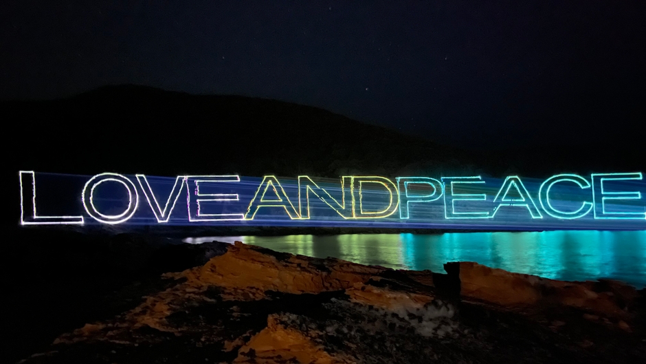 和歌山県白浜温泉で3軒の温泉宿を運営する株式会社オージャスは2022年5月24日、3289.056m2のスケールでLOVEANDPEACEの12文字をレーザービームで5分間照射に成功、ギネス世界記録に認定されました。