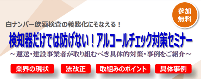 本セミナーでは、義務化が決定した白ナンバーの飲酒検査をはじめとした