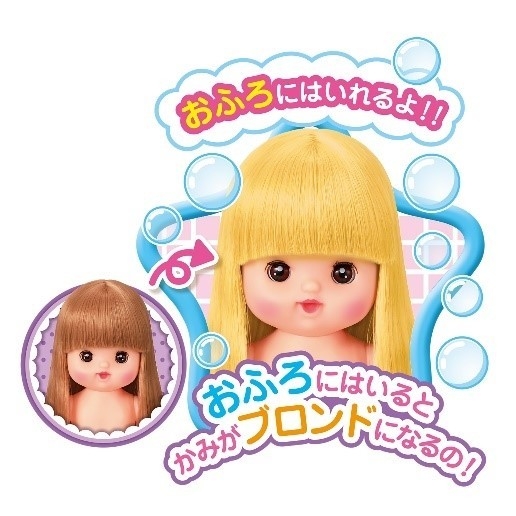 また、お風呂にはいると髪の色がブロンドに変わります。