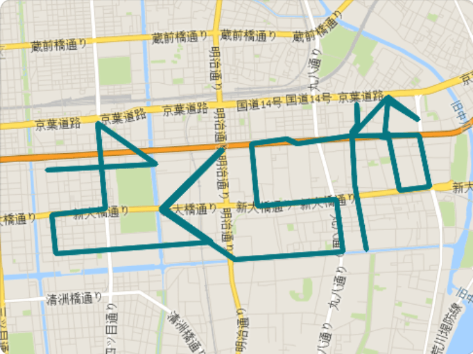 ・投稿内容:GPSアート1作品毎に街やお店の思い出とともに