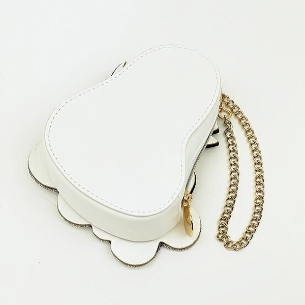 細部にまでこだわったきれいな刺繍のデザインがリアルでオシャレな印象です。イヤホンや目薬・アクセサリー等を入れられる小さめなポーチのサイズ感で、コインケースとしての使用にもぴったりですよ。ゴールドのチェーンはかわいさだけではなく、高級感さえも感じます。サイズ:7cm×9.5cm×3.5cm 素材:合成皮革