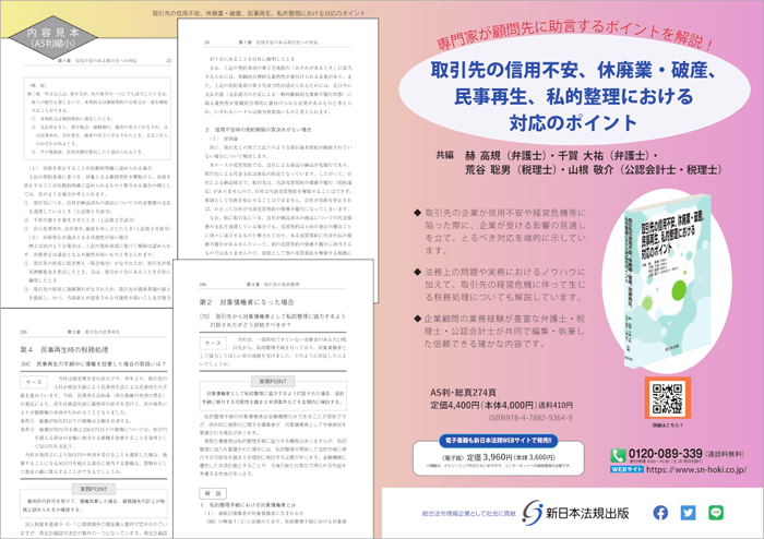 専門家が顧問先に助言するポイントを解説!「取引先の信用不安、休廃業・破産、民事再生、私的整理における対応のポイント」6/24新刊書発売!