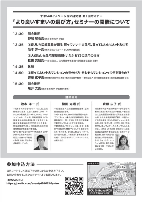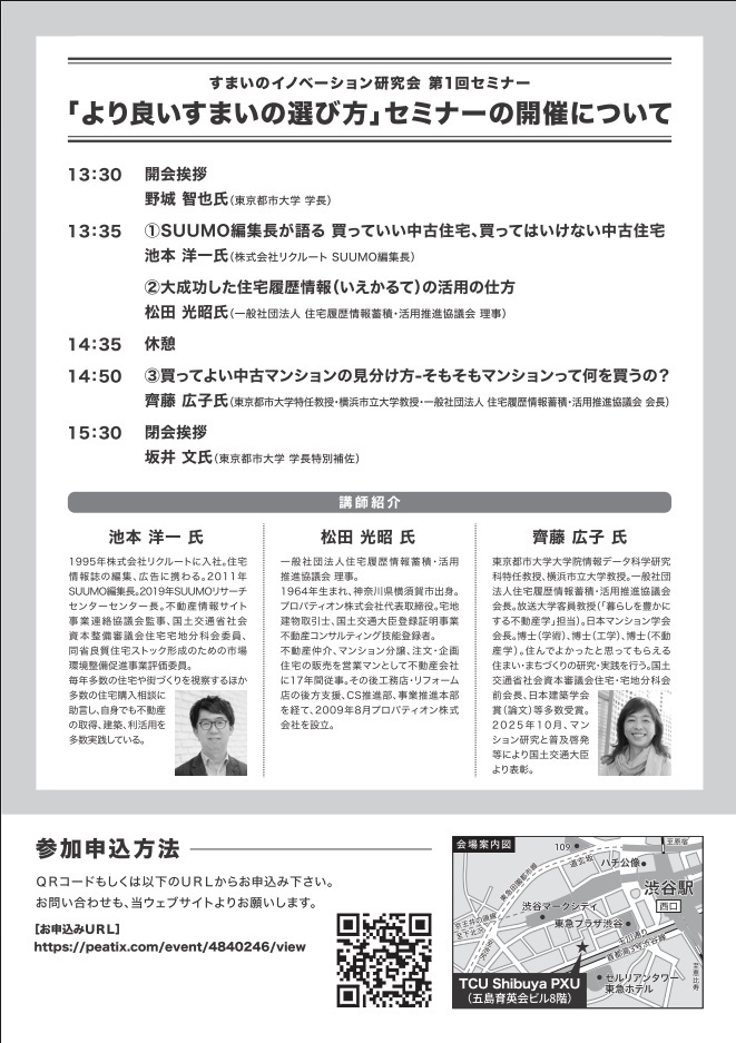 共催 : 一般社団法人 住宅履歴情報蓄積・活用推進協議会、東京都市大学