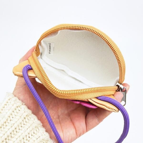 エナメル素材でテカテカした感じがとってもキュートです。小さめサイズで、小銭やカギなどの小物を入れるのにピッタリです。ひもつきなので首から下げれるので一緒におでかけを楽しむのもおすすめですよ。サイズ:10cm×12cm×2cm 素材:エナメル合成皮革