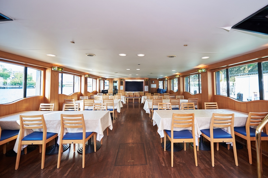 講座は、モニターやマイク設備がある船内で座学を実施した後、屋外空間である船上デッキに上がり、実際に淀川を見ながら現地調査を行う、2部構成にて実施します。