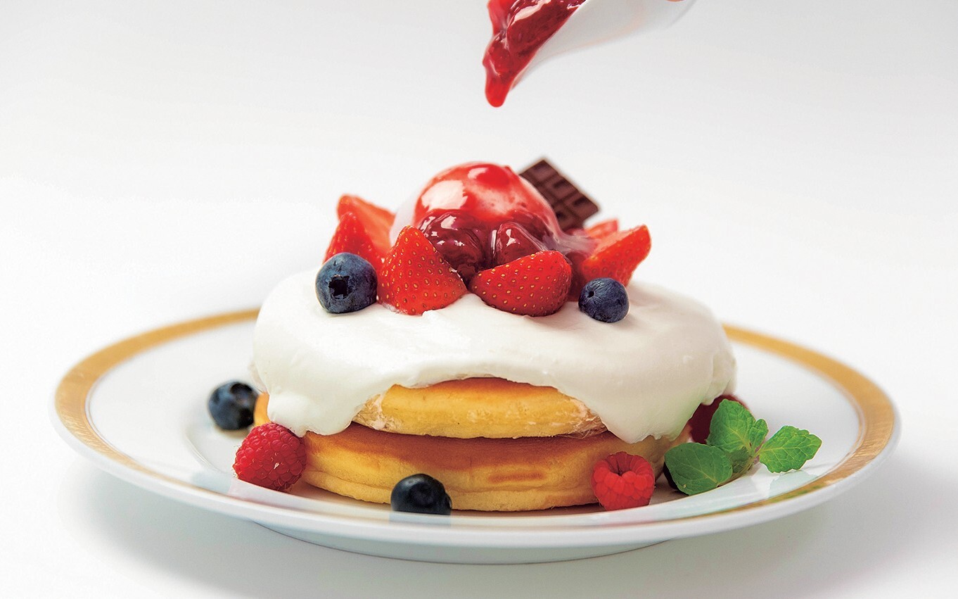 人気のホットケーキにいちごをトッピング。