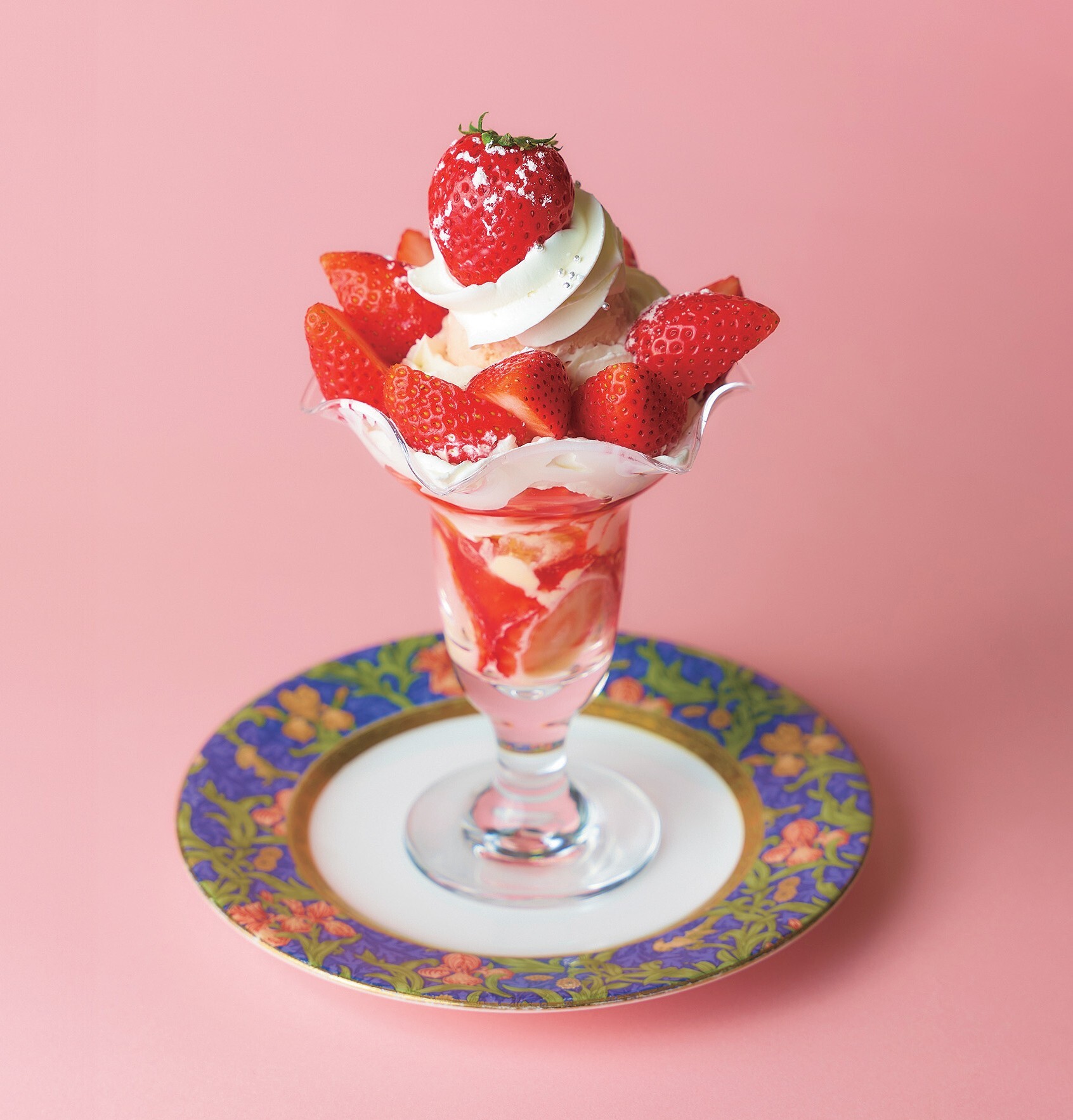 鮮やかな色合いと華やかな甘みのいちごを贅沢に使用したパフェ。