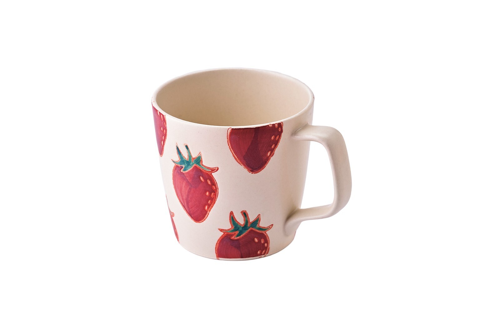 ひとつずつ手作業で描かれた優しい表情のいちご柄。