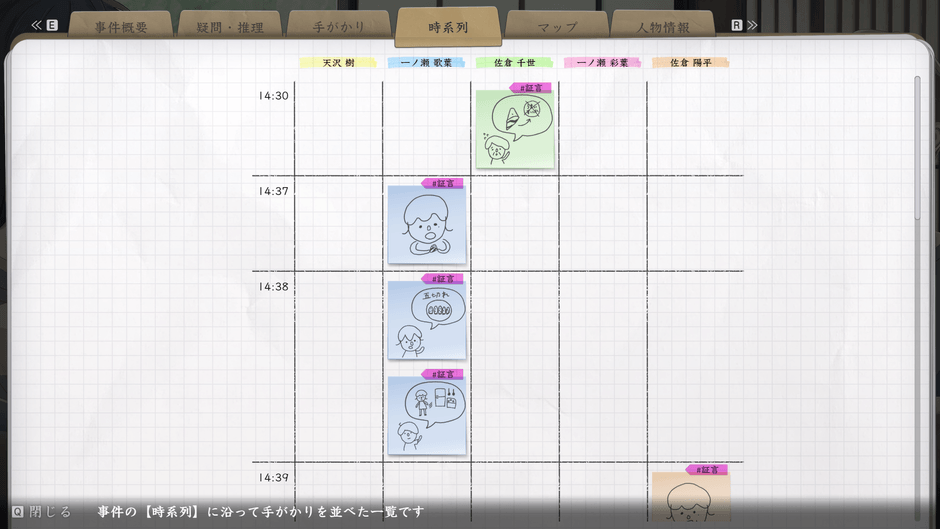 登場するキャラクターは全員が容疑者候補となる。