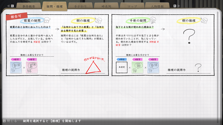調査フェーズで手に入れた手がかりは、